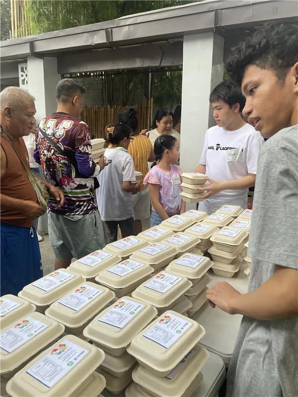 Volunteers from Allianz PNB Life distribute packed meals prepared during the Food Rescue Kitchen activity, supporting local communities and promoting food sustainability.