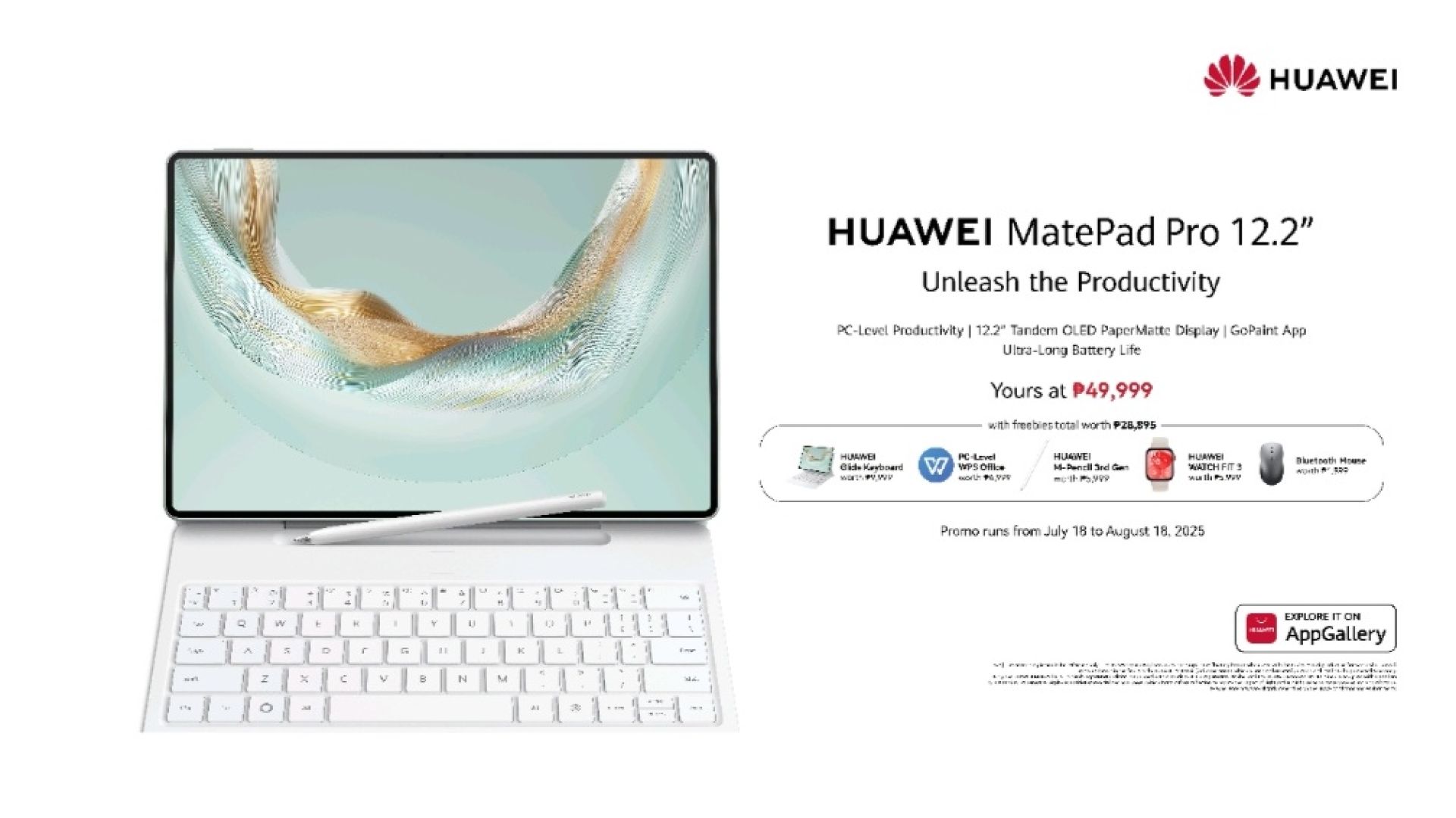 The HUAWEI MatePad Pro 12.2” (2025) is now available for PHP 49,999 through the HUAWEI Experience Stores, Shopee, Lazada, TikTok Shop, and the HUAWEI Online Store.