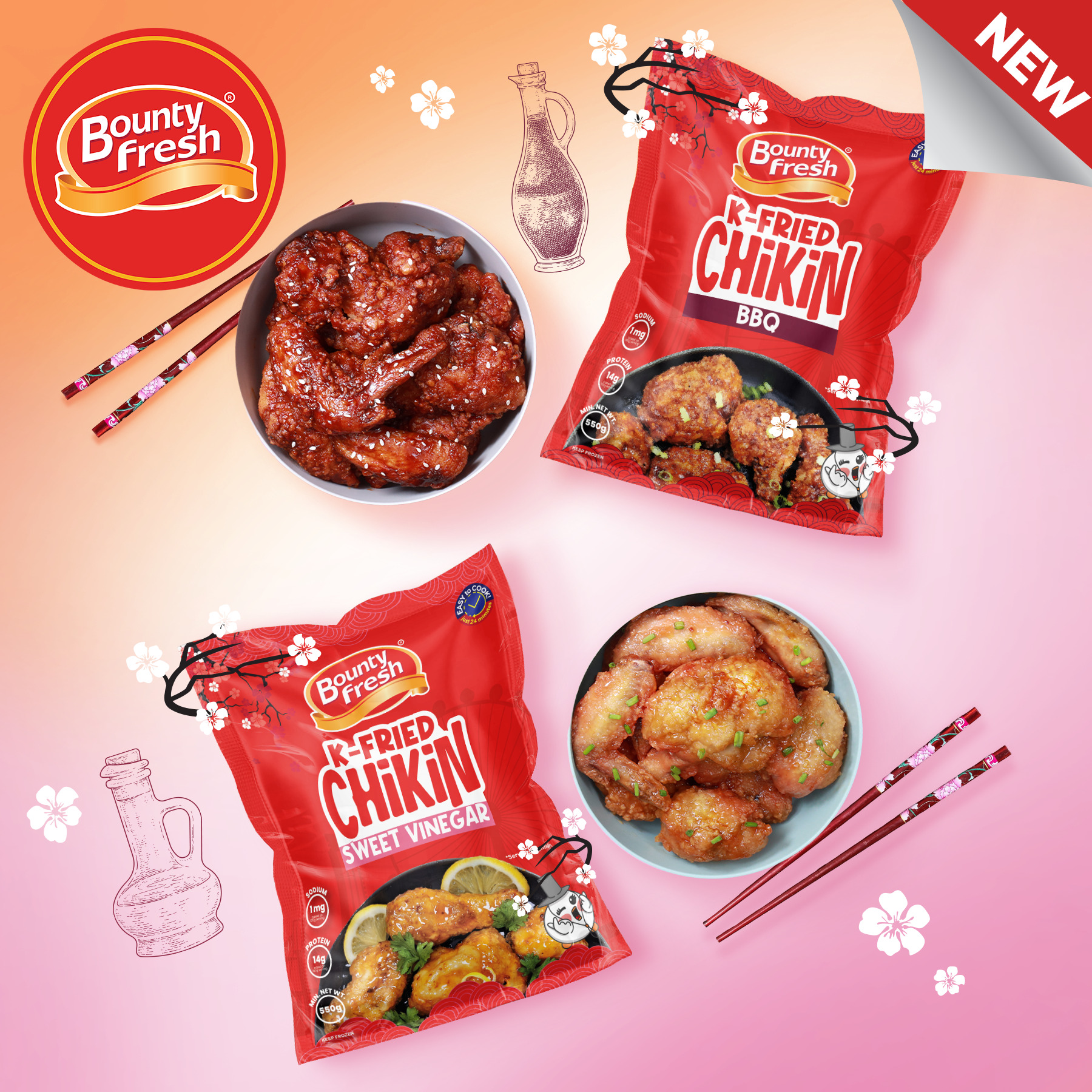 Bounty Fresh introduces K-Fried Chikin, a new chicken treat that will satisfy cravings for Korean flavors of every Filipino. This latest addition to Bounty Fresh delicious easy-to-cook meals is great for every day dish or for baon at school or work.