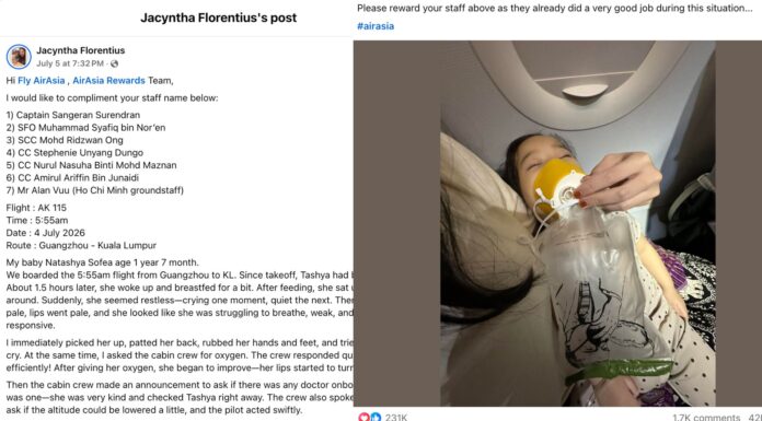 Isang flight mula Guangzhou patungong Kuala Lumpur ang kinailangang ilihis papuntang Ho Chi Minh upang masigurong mabigyan ng agarang lunas ang isang batang pasahero.