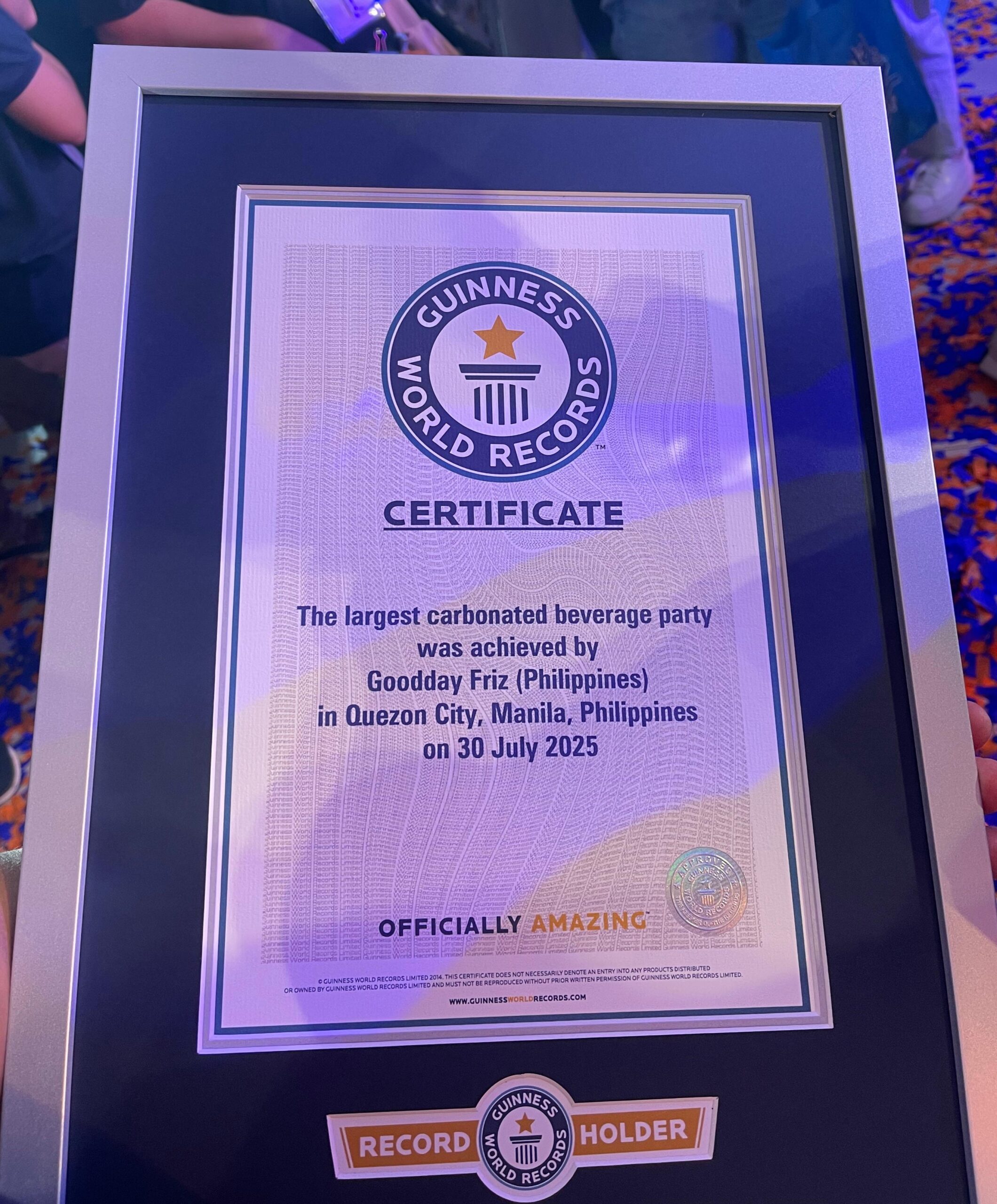 Held at the Blue Leaf Cosmopolitan in Bridgetowne, Quezon City last July 30, 2025, the event, aptly named “Making Friztory,” was a crazy good fusion of pop, fizz, and fun. The crowd raised their cans of Goodday Friz in a massive, synchronized toast, officially earning the GUINNESS WORLD RECORDS™ for the Largest Carbonated Beverage Party. The once-in-a-lifetime celebration was an epic moment in beverage history.