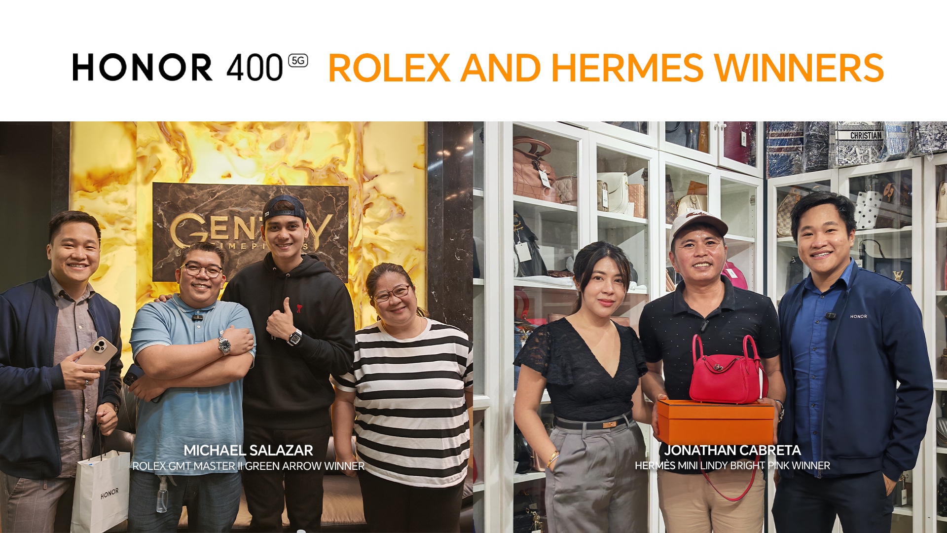 Leading smart devices provider HONOR Philippines officially awarded the Rolex Watch and Hermes Bag to the HONOR 400 5G Pre-order Giveaway Winners. It is remembered that this specific promo contributed to the huge success of the AI Phone. In partnership with Gentry Time Pieces and Purse Maison, HONOR handed over personally the prizes to Michael Salazar and Jonathan Cabreta.