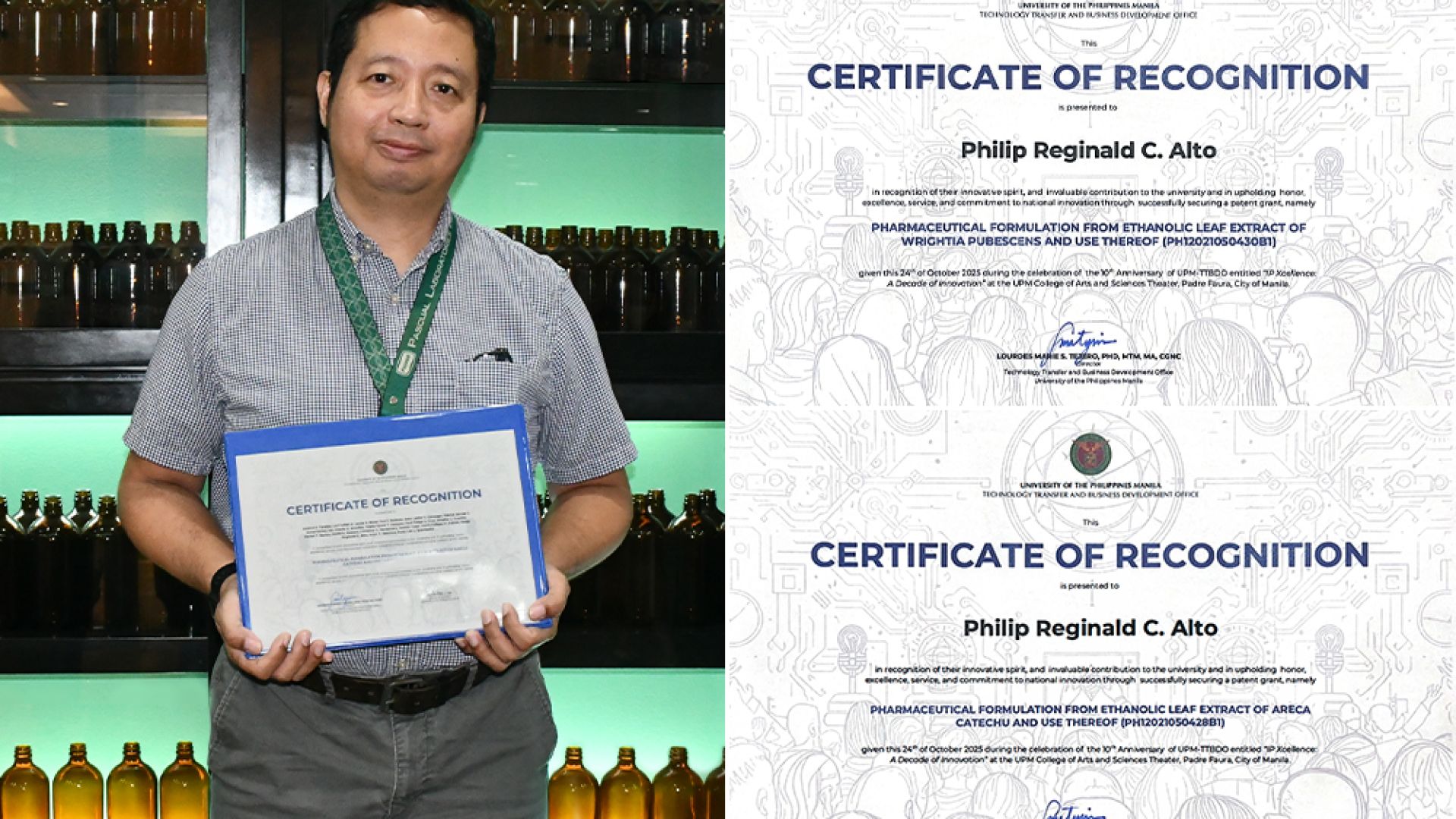 The Intellectual Property Office Philippines (IPO) Philippines recently granted three, exclusive patent approvals to Pascual Laboratories, Inc.’s (PascualLab) and its institutional co-patentees for novel compositions and formulations in nutraceuticals in a U.P. Manila ceremony celebrating the 10th Year Anniversary of its Technology Transfer and Business Development Office. The PascualLab Research & Development (Herbal) team headed by Reginald Philip Alto, and its institutional co-patentee were recently honored for exclusive patents for collaborative research on flora found in the Philippines, as well as methods of preparations studied and tested under the Department of Science and Technology (DOST) Tuklas-Lunas Program. According to the IPO (Republic Act No. 8923 or Intellectual Property Code), with these exclusive patents, the patentees, including PascualLab, have sole rights to the intellectual property for 20 years from the date of filing.