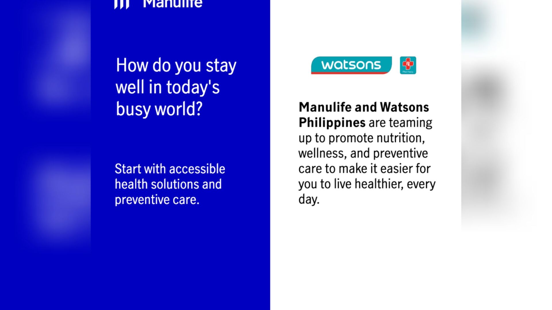Manulife Philippines, the local arm of leading international financial services provider Manulife Financial Corporation, has launched its partnership with Watsons Philippines for a public awareness campaign to promote the importance of nutrition, wellness, and preventive health. Through this campaign, the collaboration aims to enhance the overall health awareness and make preventive care more accessible to consumers in the Philippines.