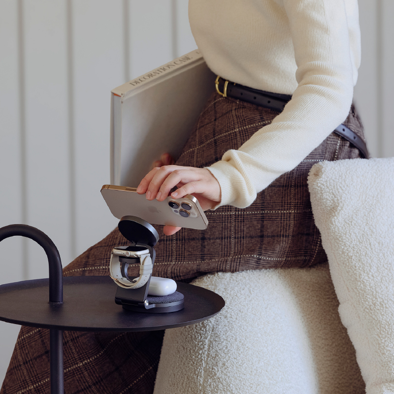 Making a grand entrance is the ADAM elements Mag 360 Qi2 3-in-1 Foldable Charging Station, a proud Red Dot Design Award 2025 Winner for its “thoughtful design and intuitive usability.” It features Qi2 Certified dual 15W fast charging capabilities, a 360° rotating dock, and sleek fabric finish in a travel-ready gizmo. With its strong magnetic alignment, you can instantly snap and charge a MagSafe-enabled iPhone, AirPods, or Apple Watch.