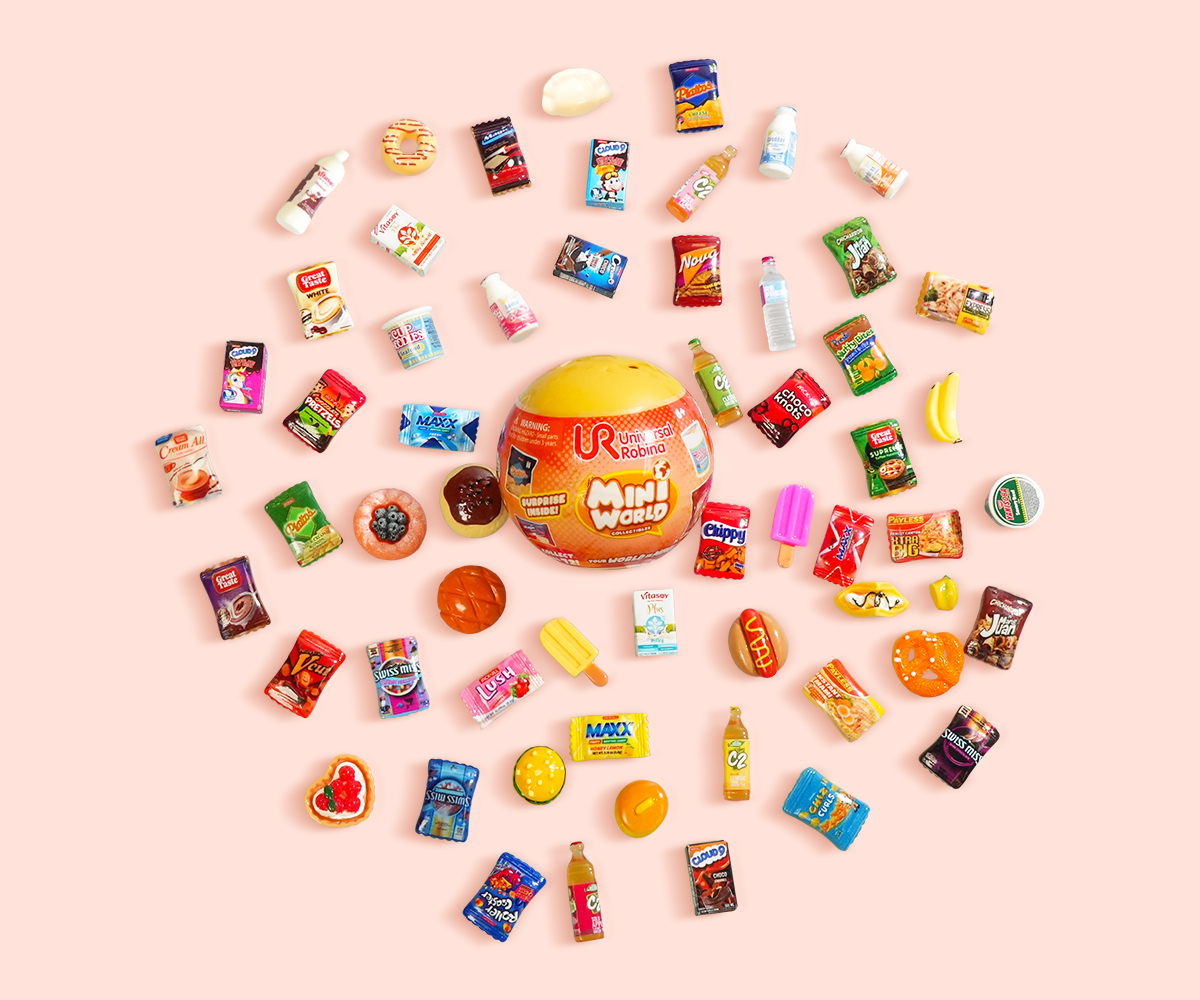 A collaboration between Universal Robina Corporation (URC) and MiniWorld Collectibles, URC MINIWORLD features miniaturized toy versions of some of the well-loved snacks and drinks from URC.